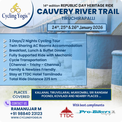 The ride was supported by Department of Tourism, TTDC, Probikers, Annai Velankanni Hospital & Madhan Photography
